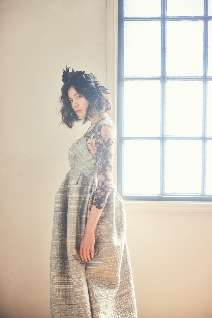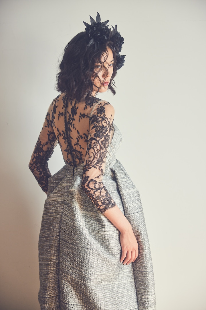Aラインでもマーメイドでもない繭のようなコクーンシルエットは現代的な大人の花嫁に纏ってほしい。