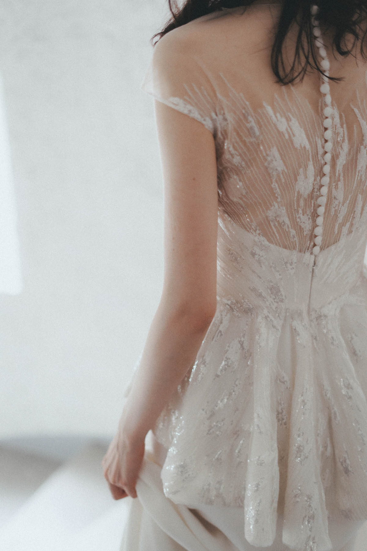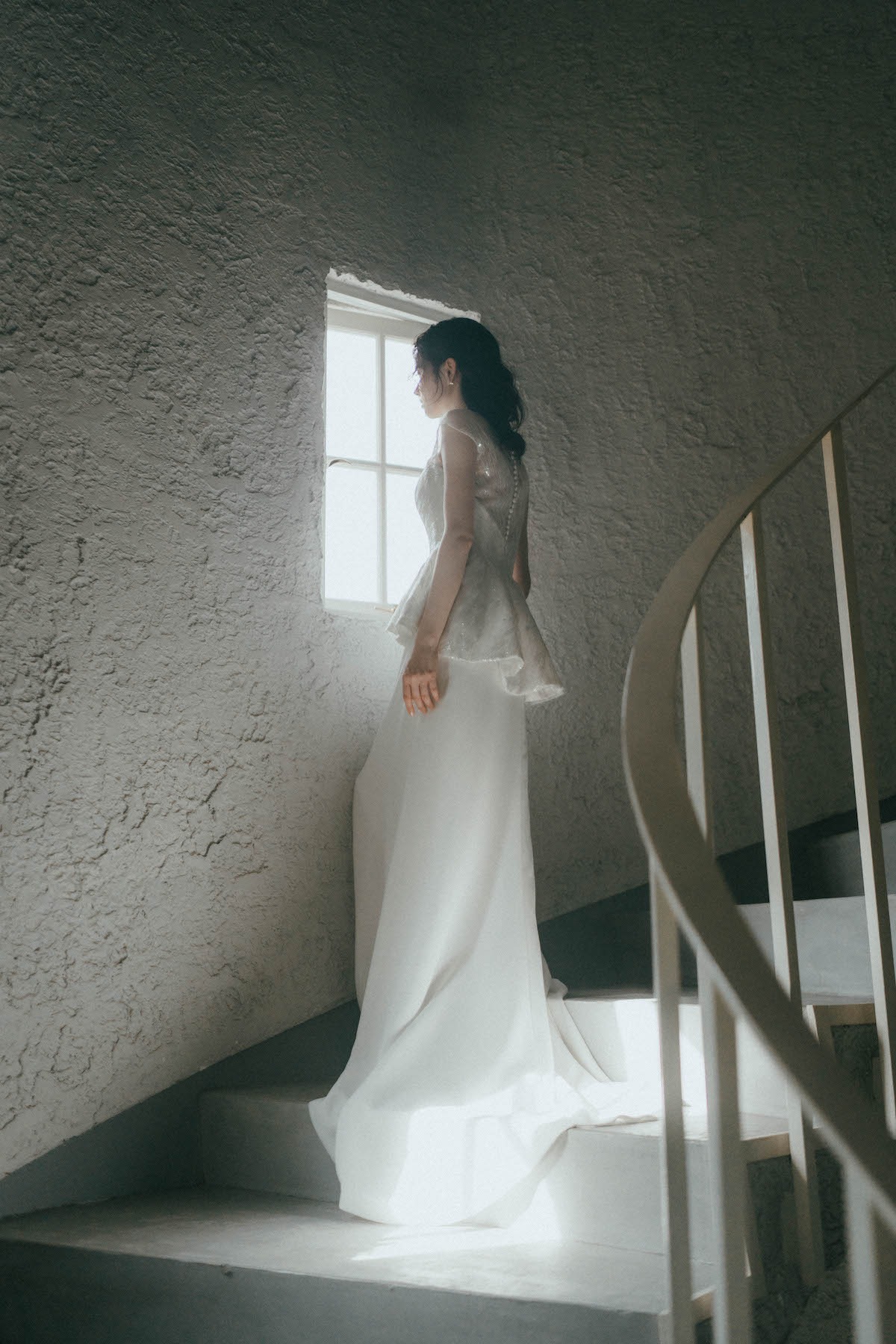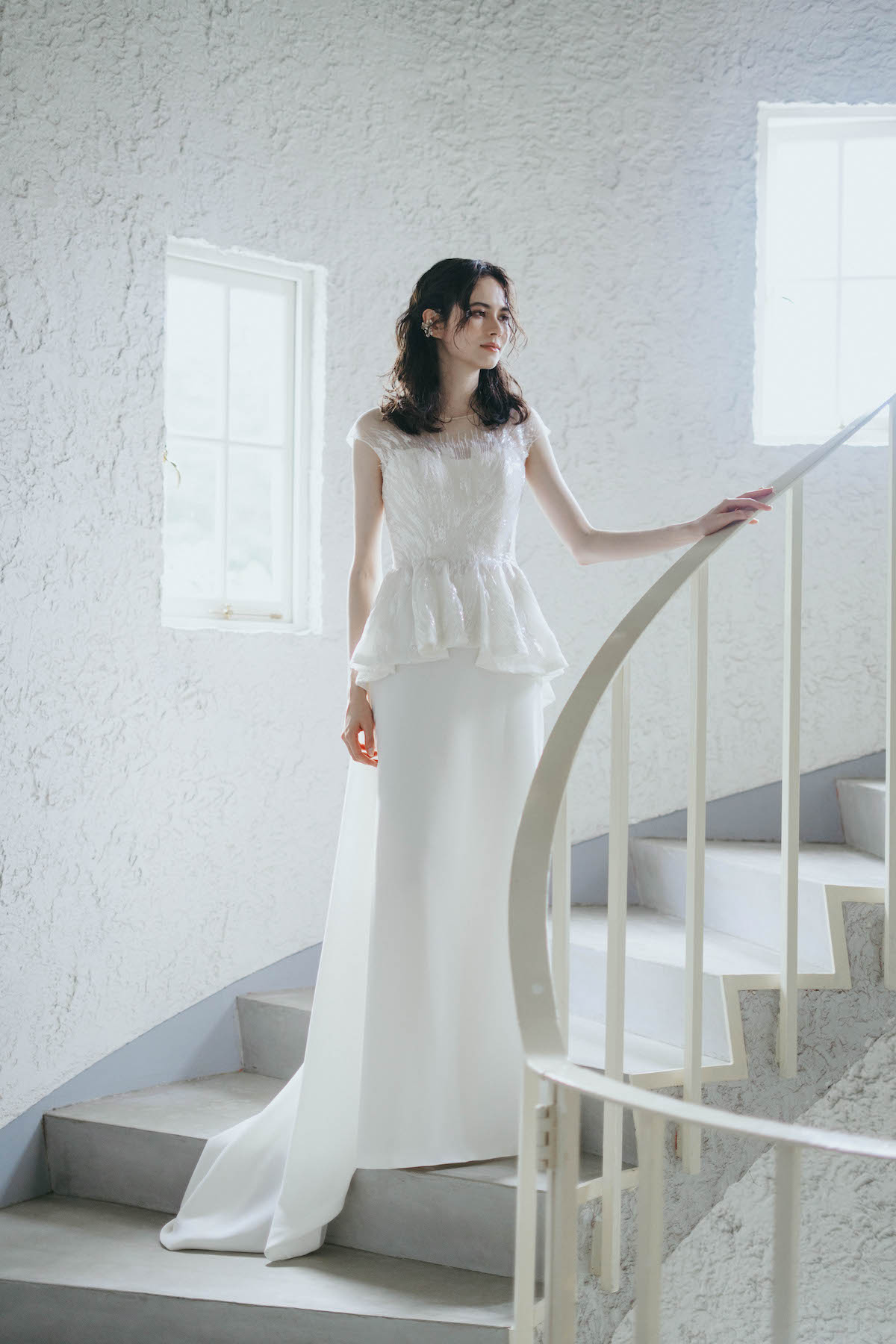 Commet ほうき星の名前がついたドレスは、その名の通り、ほうき星のような流れるカーブを描く煌めきの刺繍が特徴。キャンドルのあるパーティはもちろん、スポットライトを浴びた時の煌めきが印象的な一着。トップスとスカートがセパレートになっていて、ジョーゼットスカートとふんわり広がるチュールスカートからセレクトしてコーディネートしていただけます。 ご試着予約