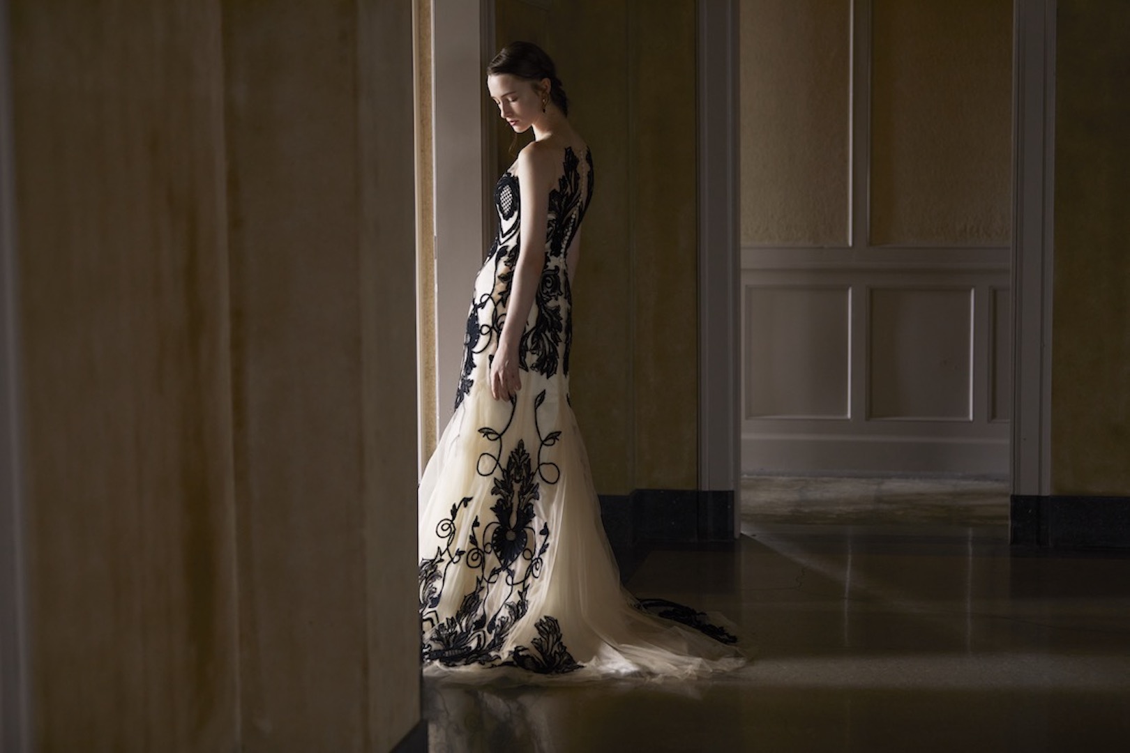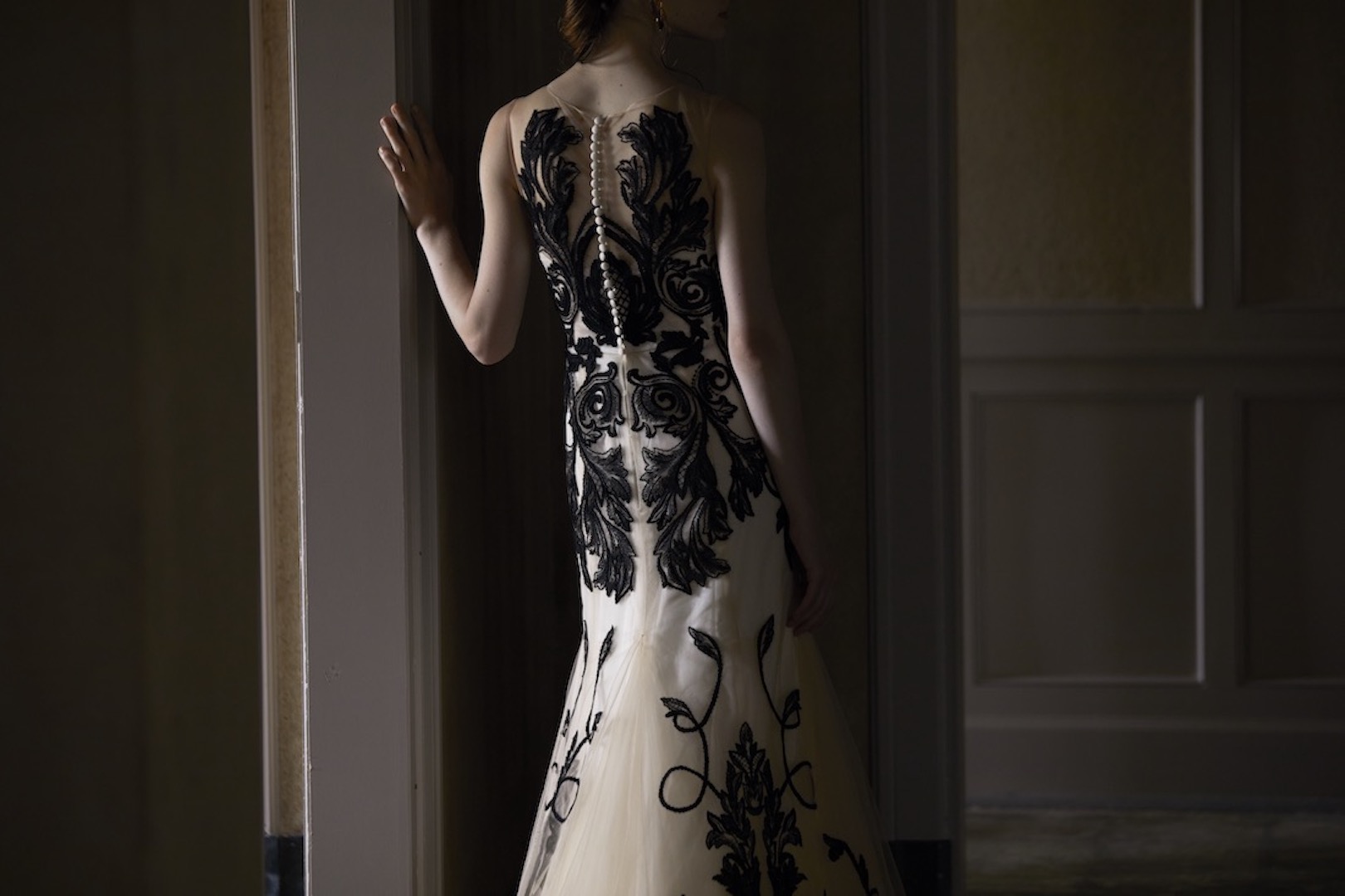 ベースがヌーディなので、優しいコントラストかつドラマティックな1着