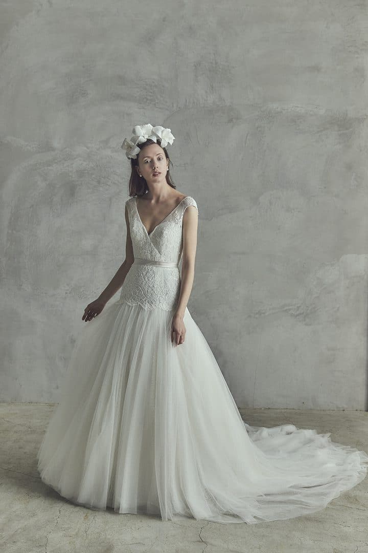 幾重にも重ねられたチュールには、まるでdiamond dustのように華やかに煌めくスパンコールが施されている。
